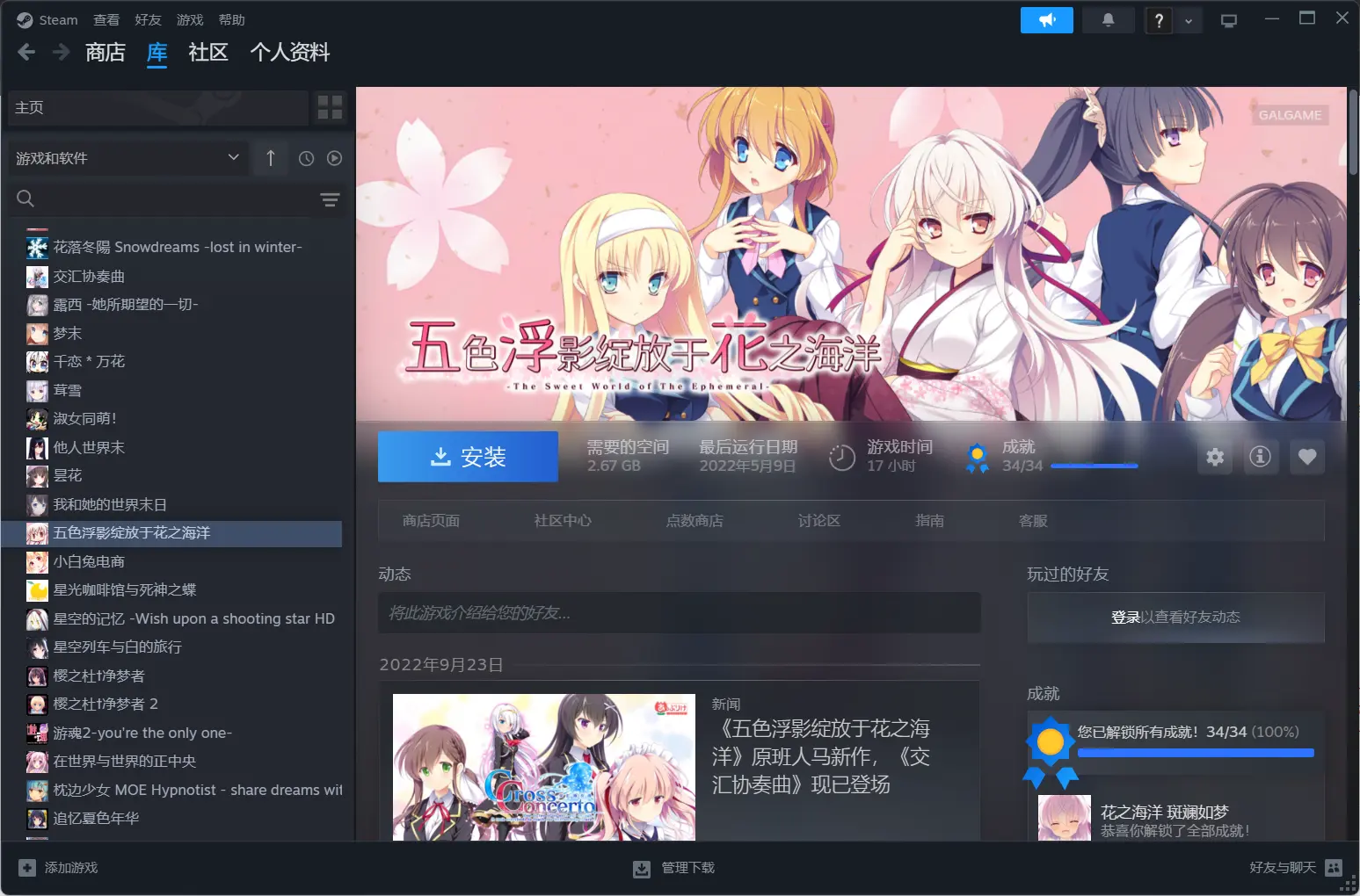 也是在这一年用luna啃了不少生肉,初心是为了补全f社全作,也是截至目前我唯一所有整社游戏全通且全线的会社,啃的第一作应该是《ウィズ アニバーサリィー》,因为体验很差所以才会有对传统机翻的痛恨。也是在这段时间学会了镜像安装,虽然多盘直到今年1月份才彻底搞懂,然后自以为很nb,当时下了不少生肉,打算后面也啃,结果还有一堆打不开的,折腾了半天,后面几乎全删掉了,纯浪费时间了属于是。