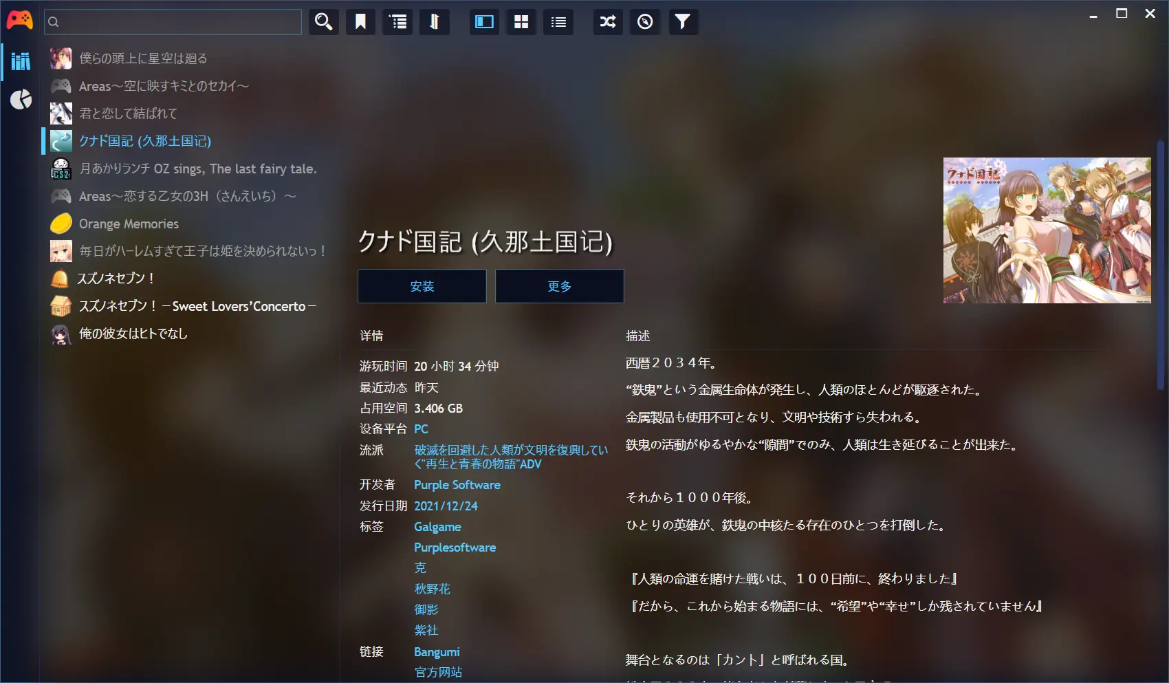 来写久那土国记也是一时兴起,满打满算紫社也是玩了4部了,本社还有2部——《天津罪》和《青鸟》,以及分社的1部——《Orange Memories》,理论上这仨可以放一起,毕竟符合我对紫社的刻板印象——共通炮,久那土我印象里是没有的。也是因为共通炮导致我一直对紫社敬而远之,现在能玩4作并且写这篇文章,放以前根本不敢想。不过说实话我更想写天津罪或者青鸟,但是这俩都玩了一两个月了,游戏都删了,图片还得再去截,外加我忘得差不多了已经,遂放弃。
