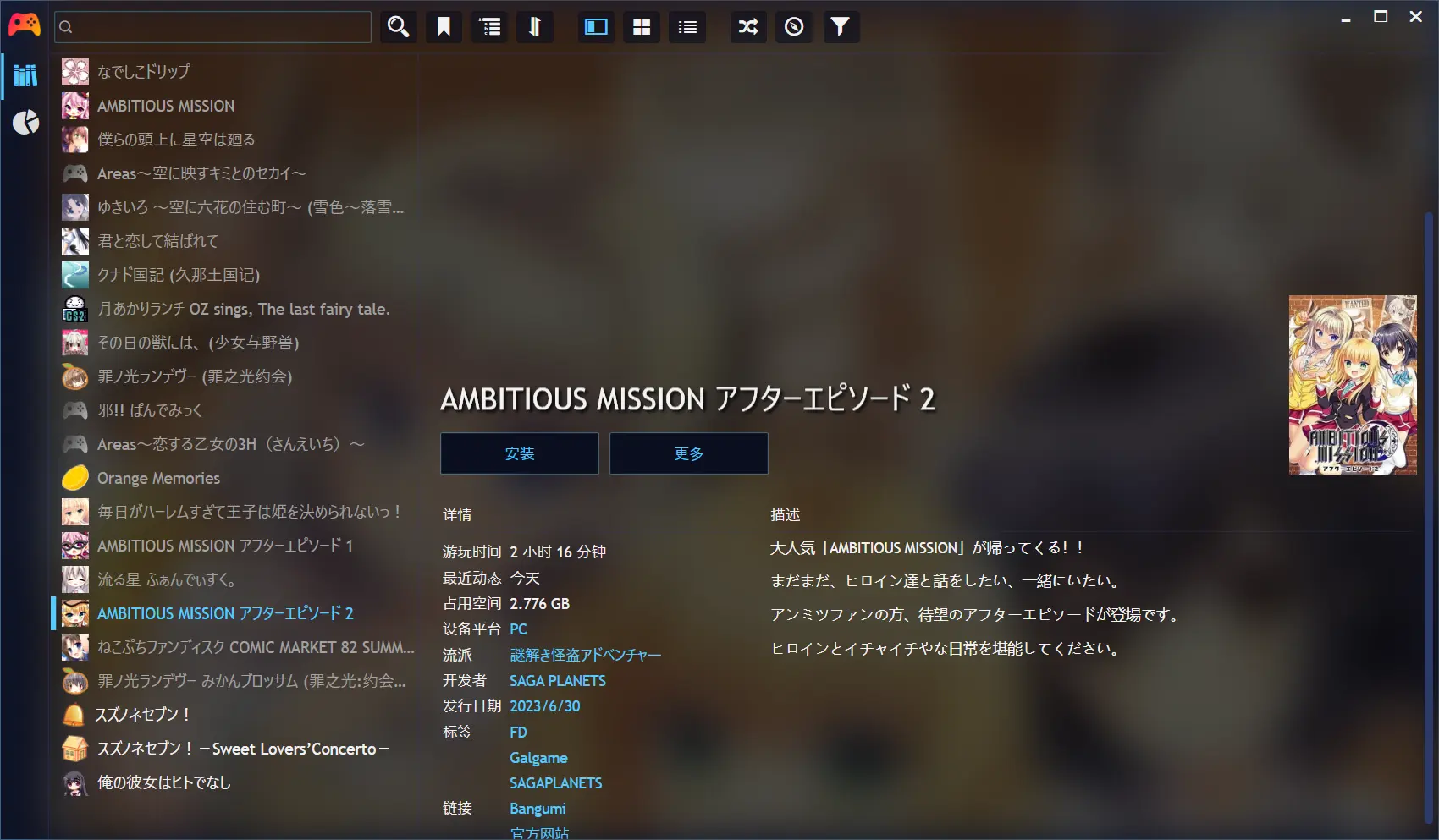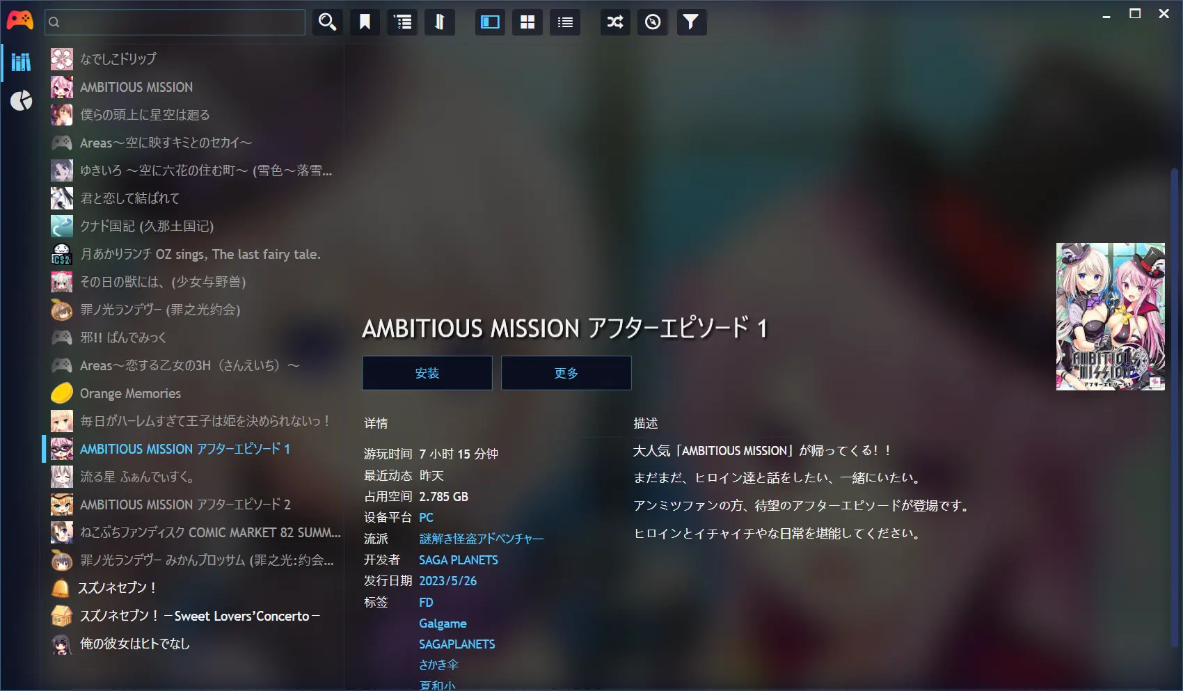 这次隔得有点久了,都快一个月了,我也不知道我在忙什么,但就是很忙,打完《雪色》及其fd《ねこぷちファンディスク》后,摸了下《流星 -a wish star-》的fd《流る星 ふぁんでぃすく。》,然后被《なでしこドリップ》硬控了近半个月,再到今天打完《AMBITIOUS MISSION》,差不多一个月就结束了,确实是比较懈怠,不过以后这种情况应该会变多吧,毕竟真没什么动力了。