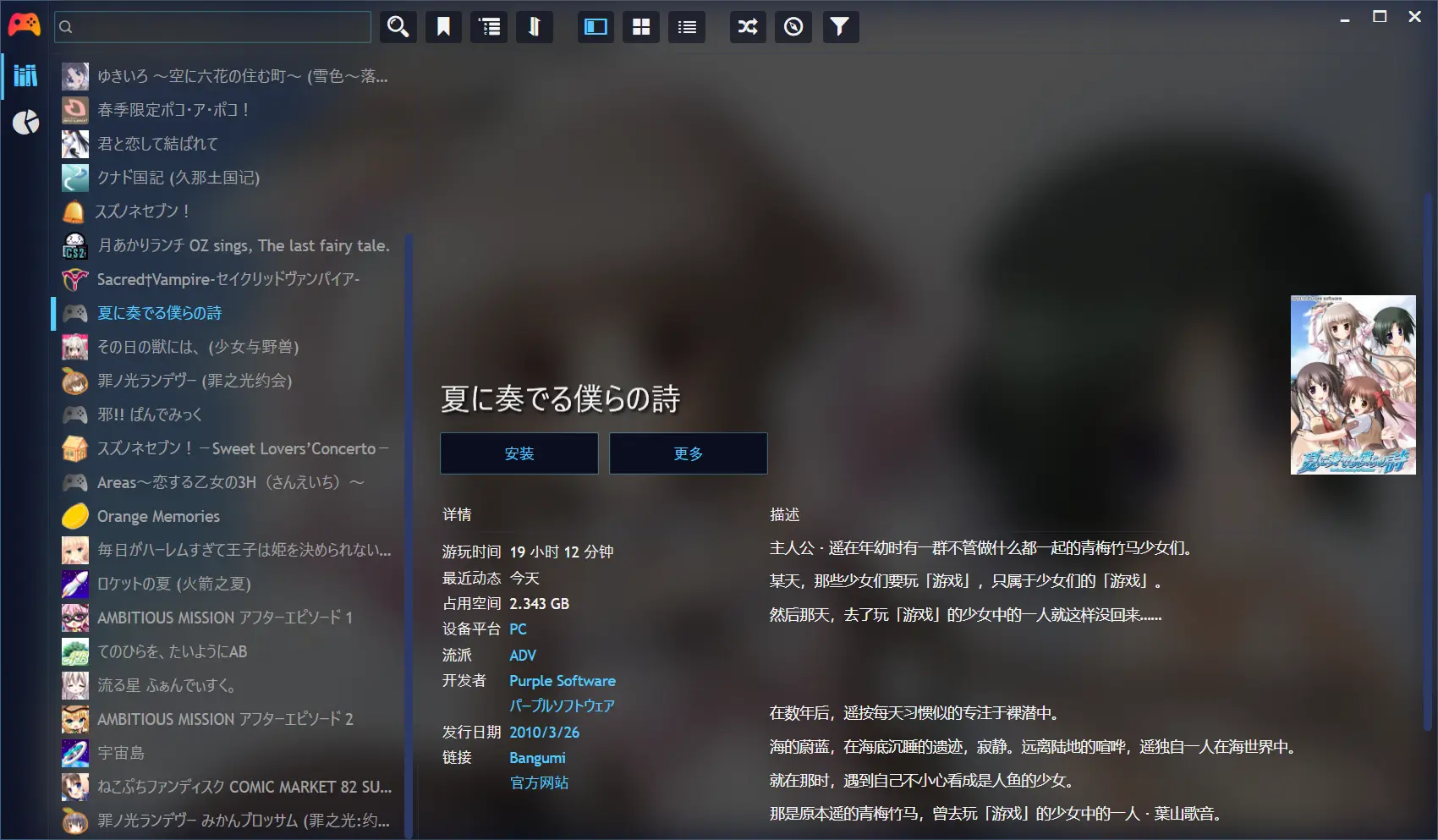 大概花了19小时,中途有点小曲折,playnite不知道抽什么风没办法计le快捷方式的时间,导致前几个小时漏算了,然后又被2dfan的攻略坑了,很多属于本条路线女主的剧情没走,然后还对不上选项,花了半天重看剧情和skip,结果后面看诚也还是有地方对不上,不过也就缺一点点差分剧情,算了不影响。