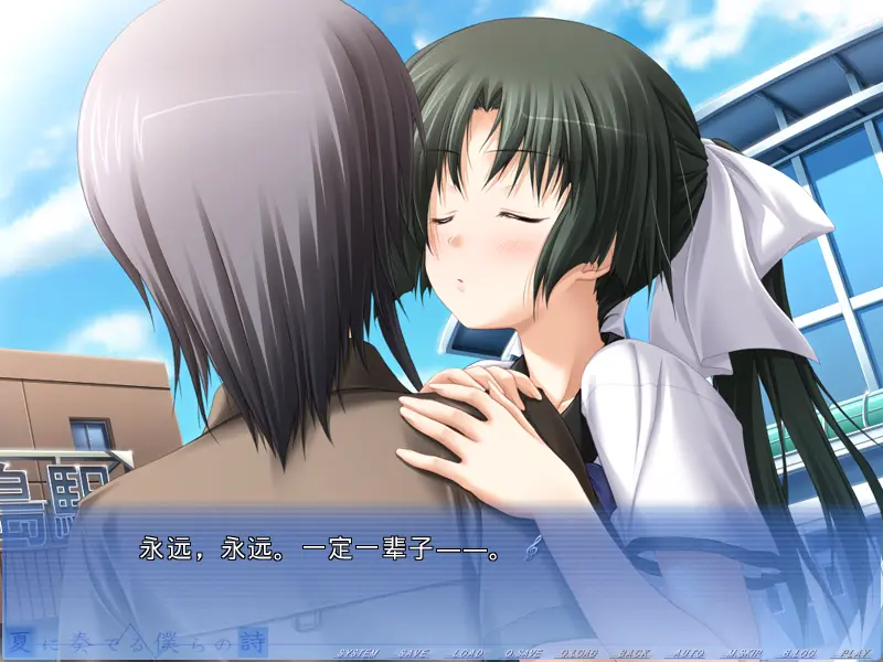 这次倒是没隔几天就来了,主要还是这游戏对我来说有点意义吧,因为间隔比较短,所以期间没玩几作,就摸了《Sacred†Vampire-セイクリッドヴァンパイア-》和《ロケットの夏》。本作的话其实老早之前就标记了,应该是24年的时候吧,上半年有一次本来想玩,但是不想安装日繁字体跑了,虽然这次还是被迫安了,搞不懂紫社的引擎。不过之前跑很大程度上也是因为森崎 亮人,当时玩了他写的《フェイクアズール・アーコロジー》和《Re:birth colony -Lost azurite-》,体验一言难尽,本来都拉黑了,现在感觉无所谓了所以又玩上了,顺便一提,本作的另外一个脚本冬 雀,是我上一篇《てのひらを、たいように》的脚本之一,也算是缘分了,不过大概也因为这一点,导致两作剧情设计上有一定共性,这个放后面说。