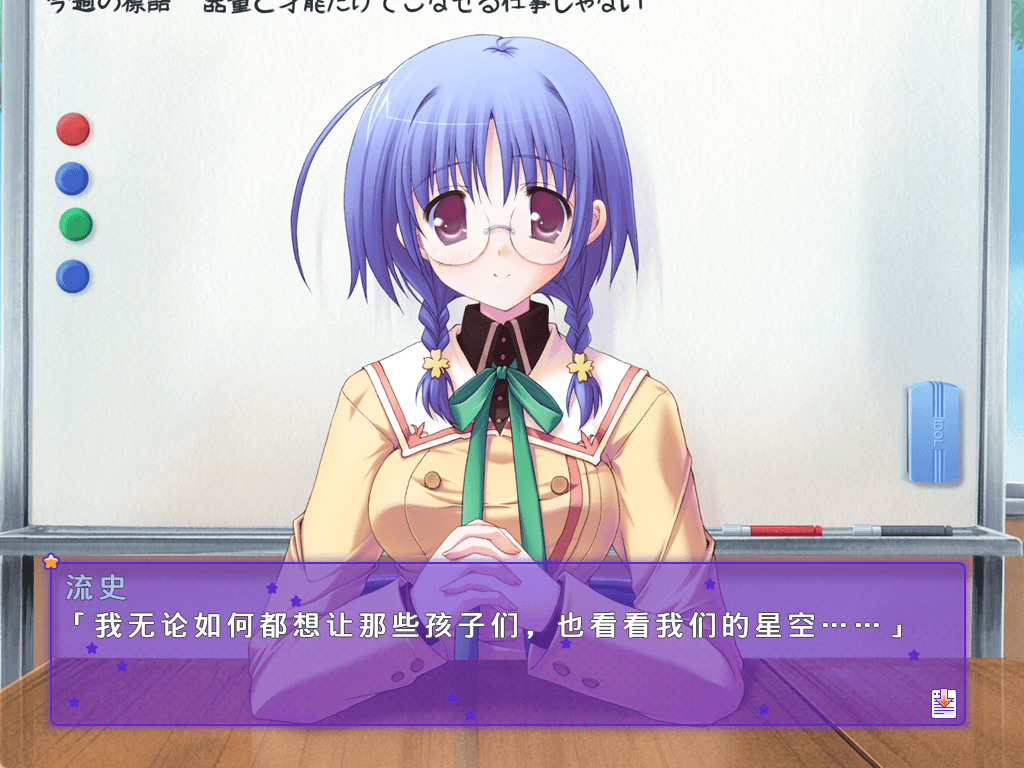 上面也说了,流史共通线并不喜欢男主,喜欢的是天文部的部长,这条线的主要剧情就是男主帮助流史向部长表白,最后被拒然后喜欢上了鼓励过他的男主。